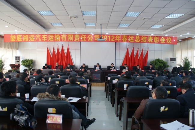 雄壯的國歌聲開啟了先進(jìn)表彰會(huì)的序幕。首先,公司董事長兼總經(jīng)理彭瑞華做了2012年春運(yùn)工作總結(jié)。他說,2012年春運(yùn)于1月8日開始,至2月16日結(jié)束,全司上下緊緊圍繞“以人為本、科學(xué)組織、安全有序、優(yōu)質(zhì)高效”的總體要求,在各級政府及行業(yè)主管部門的關(guān)心和支持下,通過廣大員工的共同努力,實(shí)現(xiàn)了春運(yùn)安全生產(chǎn)雙豐收,春運(yùn)40天全司共完成招攬收入3496.42萬元,與2011年同期比增加了165.6萬元,增長了4.97%。全司共運(yùn)行班次11.03萬次,共投入建制營運(yùn)客車376臺(tái)、旅游公車30臺(tái)、出租車114臺(tái),參運(yùn)客車駕駛員484名、出租車駕駛員228名,安全運(yùn)行里程736.8萬公里。春運(yùn)40天,各單位充分利用了廣播、電視、網(wǎng)絡(luò)、報(bào)紙、刊物等宣傳媒體,及時(shí)宣傳報(bào)道了公司的春運(yùn)安全生產(chǎn)情況。同時(shí),他指出,今年春運(yùn)期間各單位均能從服務(wù)質(zhì)量入手,改變春運(yùn)期間客流量大、服務(wù)工作難的傳統(tǒng)觀念,盡管節(jié)后站場內(nèi)車多客流大,站外運(yùn)輸市場競爭激烈,各單位均能克服困難,維護(hù)好站場秩序穩(wěn)定和站內(nèi)衛(wèi)生清潔,較好的樹立了文明窗口的形象。尤其是正月初六、初七因旅客較多,部分班車因道路堵塞晚點(diǎn),致使旅客滯留在候車室,各單位均能安排人員耐心解釋,熱情服務(wù),直至旅客發(fā)完后才回去休息,受到廣大旅客的一致好評。最后他強(qiáng)調(diào),2012年是國家“十二•五”規(guī)劃實(shí)施后承上啟下的重要一年,也是我司實(shí)現(xiàn)跨越式發(fā)展的關(guān)鍵之年,我們要繼續(xù)發(fā)揚(yáng)成績,克服不足,把春運(yùn)工作的重心從緊緊圍繞目標(biāo)任務(wù)開始,制定切實(shí)可行的方案和措施,從而變“坐攬營收”為招攬營收,真正做到收入顆粒歸倉。
