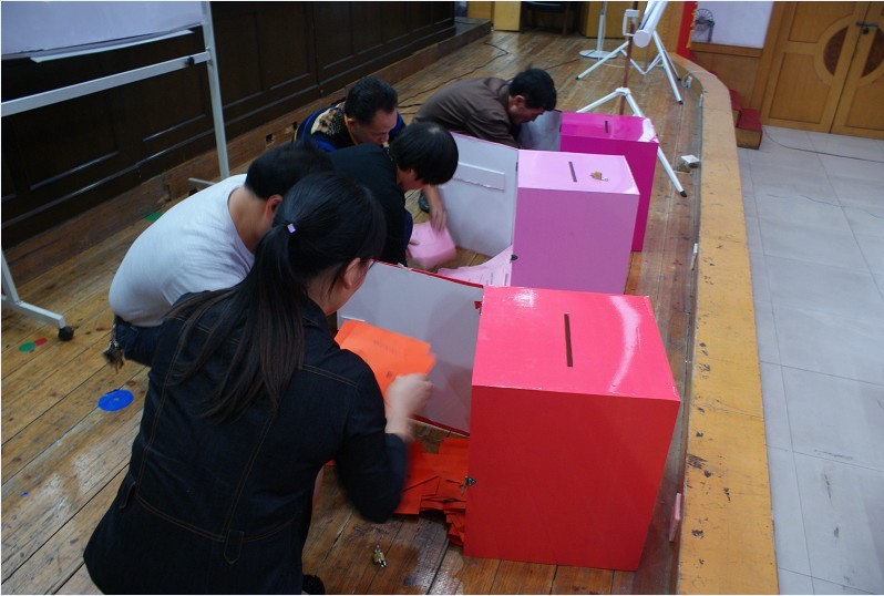 聯(lián)合子公司選區(qū)工作人員會(huì)場(chǎng)開啟選票袋
