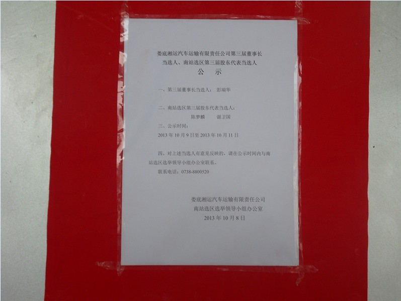 公司董事長(zhǎng)當(dāng)選人、南站選區(qū)股東代表當(dāng)選人公示
