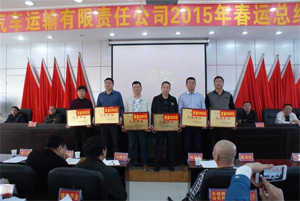 董事長兼總經(jīng)理彭瑞華等公司領(lǐng)導為2015年春運先進班組頒獎