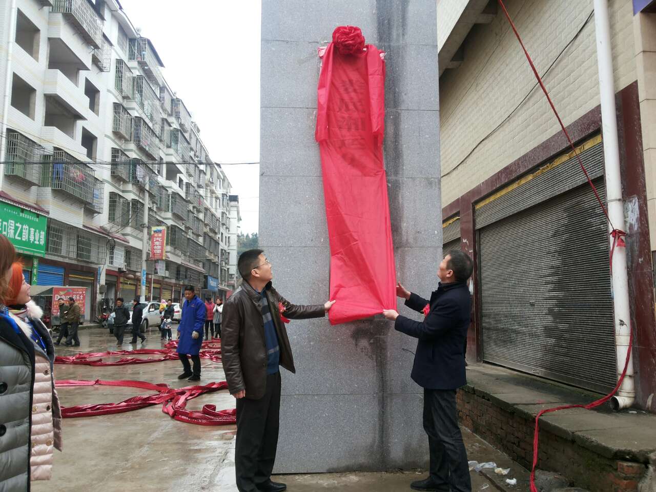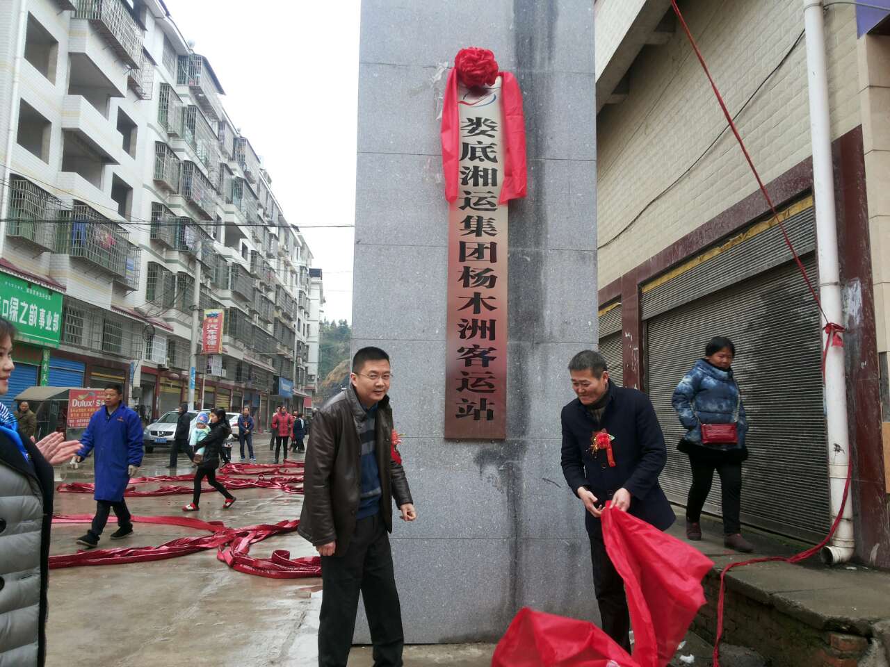 瑯塘鎮(zhèn)鎮(zhèn)長龔國旺、公司董事長、總經(jīng)理彭瑞華為車站揭牌