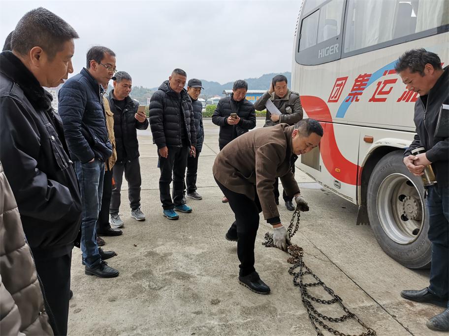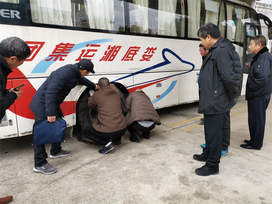 根據(jù)氣象預(yù)報(bào)發(fā)布,我市將持續(xù)低溫雨雪冰凍惡劣天氣,給老百姓工作、生活以及交通出行帶來極大影響。為將惡劣雨雪冰凍影響降到最低,確保旅客平安出行,婁底湘運(yùn)集團(tuán)嚴(yán)陣以待,積極應(yīng)對,落實(shí)責(zé)任,提前啟動(dòng)冰雪惡劣天氣應(yīng)急方案,扎實(shí)做好各項(xiàng)防范措施以及安全生產(chǎn)工作。一、公司召開安全例會,提前就冬季安全工作進(jìn)行全面布置,重點(diǎn)部署了即將到來的低溫雨雪冰凍惡劣天氣安全工作。二、組織各單位安全副經(jīng)理、安技辦主任等現(xiàn)場觀摩防滑鏈安裝演練,要求安全管理工作中高標(biāo)準(zhǔn)督促駕駛員落實(shí)。三、通過安全QQ、微信群、電話等及時(shí)轉(zhuǎn)發(fā)天氣預(yù)報(bào),針對性采取防范措施。四、充分利用動(dòng)態(tài)監(jiān)控,第一時(shí)間掌握車輛的運(yùn)行狀態(tài),對在外運(yùn)行的班車逐臺查詢,對全司所有車輛每隔2小時(shí)發(fā)布惡劣天氣預(yù)警,五、要求各單位做好防冰防寒防滑以及安全警示警告及班次停運(yùn)通知公示工作,六是增派問訊人員,及時(shí)給廣大旅客做好停運(yùn)解釋工作,要求所有售票窗口不收取任何退票手續(xù)費(fèi),免費(fèi)提供熱開水,開放空調(diào)候車室等保暖工作。七是加強(qiáng)對各單位冬季安全工作督查力度。29日晚婁底迎來降雪,安全副總羅雄雁率安技部人員冒雪前往婁底車站南站檢查,并來到監(jiān)控中心,通過監(jiān)控平臺對全司車輛狀態(tài)以及按要求停運(yùn)車輛情況進(jìn)行重點(diǎn)檢查,對各單位防滑防冰保暖警識牌設(shè)立、值班值守情況進(jìn)行了現(xiàn)場落實(shí)與督辦。