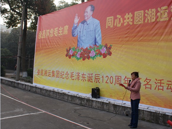今年是毛澤東主席誕辰120周年,是公司深入學(xué)習(xí)貫徹黨的十八屆三中全會(huì)精神,踏上新征程的開局之年。12月24日上午9時(shí)許,公司在老機(jī)關(guān)院落籃球坪隆重舉行“永遠(yuǎn)懷念毛主席、同心共圓湘運(yùn)夢”紀(jì)念毛澤東誕辰120周年離退休老同志大型簽名紀(jì)念活動(dòng),緬懷先烈們的豐功偉績。公司婁底片離退休、 內(nèi)退、協(xié)保同志近四百人參加了此次活動(dòng)。公司董事長兼總經(jīng)理彭瑞華、監(jiān)事會(huì)主席吳一江等公司領(lǐng)導(dǎo)親臨活動(dòng)現(xiàn)場。